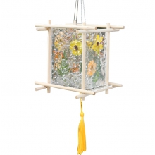 中秋节灯笼手工画画diy材料 【玻璃绘画款】送线稿+12色颜料+画笔+金色描边笔 灯笼尺寸约:13*13*13CM