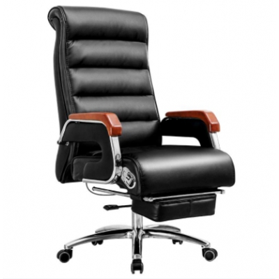 源木语黑色牛皮办公椅带搁脚