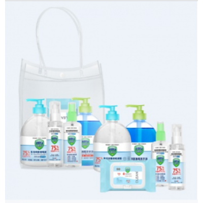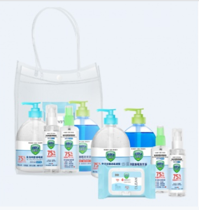 办公及家庭必备 防疫五件套(1瓶免洗凝露500ml 1瓶消毒凝露100ml 1瓶酒精喷雾100ml 1瓶洗手液500ml 40片 酒精湿巾) 自营