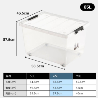 茶花(CHAHUA) 茶花透明磨砂收纳箱无滑轮整理箱有盖储物盒塑料衣服收纳箱 【65升*1只装】透明收纳箱 透明收纳箱 自营