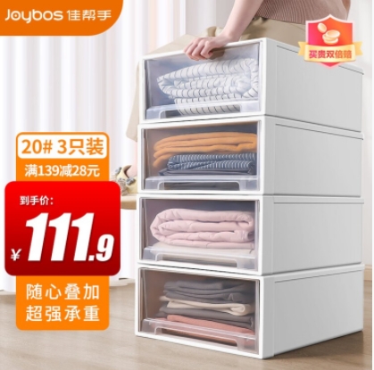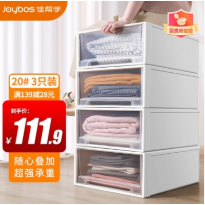 佳帮手 收纳箱抽屉式收纳盒储物箱透明可叠加衣柜收纳整理箱衣服打包箱 自营