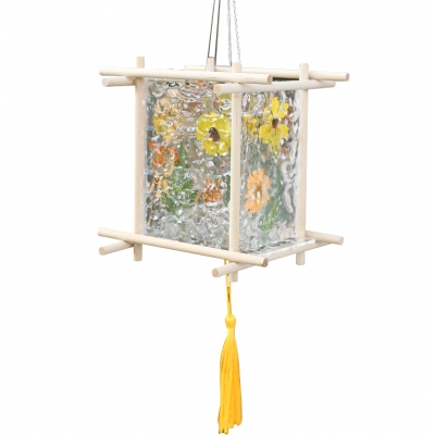 中秋节灯笼手工画画diy材料 【玻璃绘画款】送线稿+12色颜料+画笔+金色描边笔 灯笼尺寸约:13*13*13CM 自营