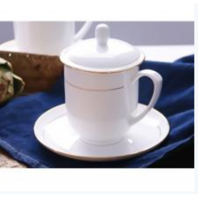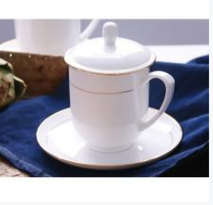 金边陶瓷杯子带盖泡茶茶杯手绘金色骨瓷办公会议水杯 自营