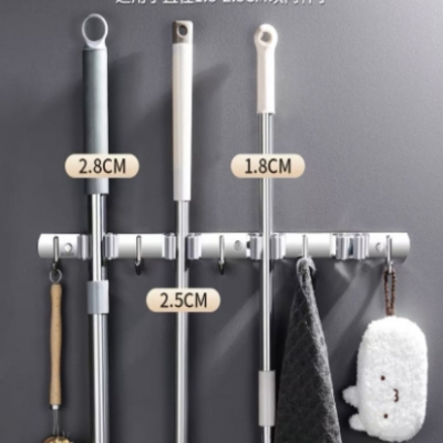 拖把壁挂夹挂钩 免打孔卫生间扫把固定挂架 特厚304灰色【4夹5钩】两用 自营