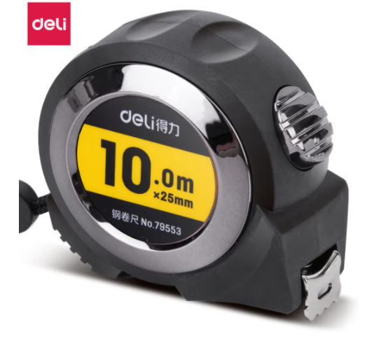 得力(deli)10m全包胶自锁钢卷尺 黑色 自营