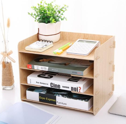 得力 79213 木质文件架 多层收纳文件筐 资料架文件栏 办公学习桌面文具架子 原木色 231*235*261mm 自营