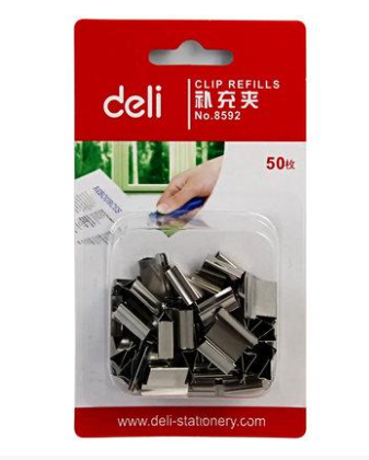得力 8592 推夹器补充夹 无钉可夹40张大容量夹纸器 银色 50枚/卡 自营