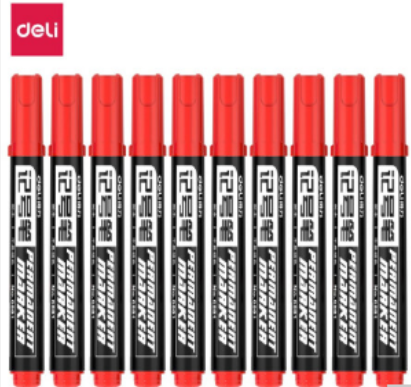得力(deli)红色粗头物流油性记号笔大头笔 10支/盒6881 办公用品 自营