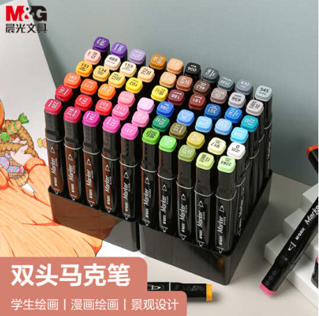 晨光(M&G)文具60色双头酒精性速干马克笔 袋装油性学生款水彩笔 纤维笔头宽头约7mm 绘画手绘涂鸦APMV1415 自营
