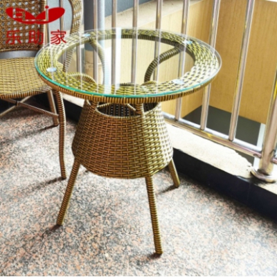 乐助家藤桌玻璃小圆桌