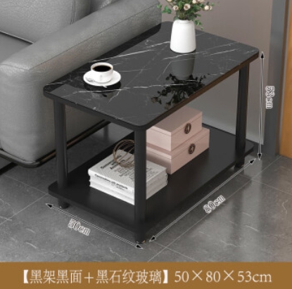 沙发中间小茶几小方桌办公室接待室专用小边几小茶台钢化玻璃边桌 黑架黑面黑石纹 50*80*53