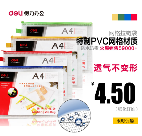 得力拉链袋5658文件袋 透明塑料网格袋 a6公文袋 拉边袋 资料袋 自营