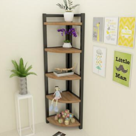 简易墙角架客厅钢木墙角置物架卧室书架落地多层三角架简约转角架 五层高度150半径30