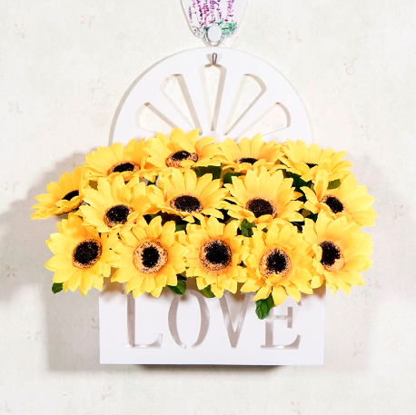 S220788 挂篮假花仿真花含花盆客厅摆件北欧塑料娟花束餐桌装饰壁挂花盆栽 小向日葵+挂篮 自营