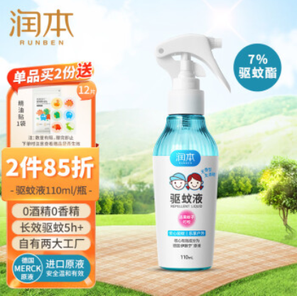 润本(RUNBEN)驱蚊液驱蚊喷雾110ml儿童驱蚊蚊虫叮咬花露水驱蚊水7%驱蚊酯无香 自营